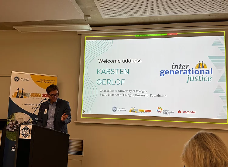 Den Auftakt macht die Cologne Summer School on Intergenerational Justice. Conviviality, Cooperation and Sustainable Future Visions, die vom 21. Juli bis 1. August 2025 an der Universität zu Köln stattfindet – in einem hybriden Format mit zwanzig Teilnehmenden vor Ort und zwölf Studierenden, die digital zugeschaltet sind.