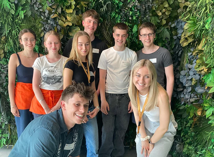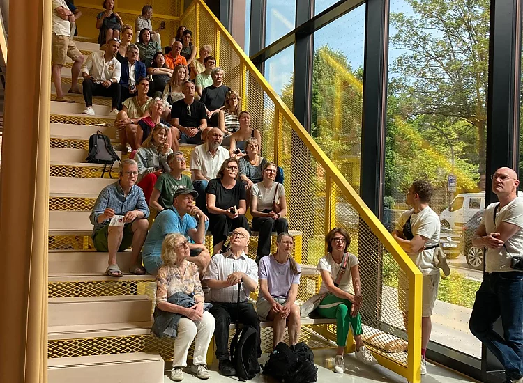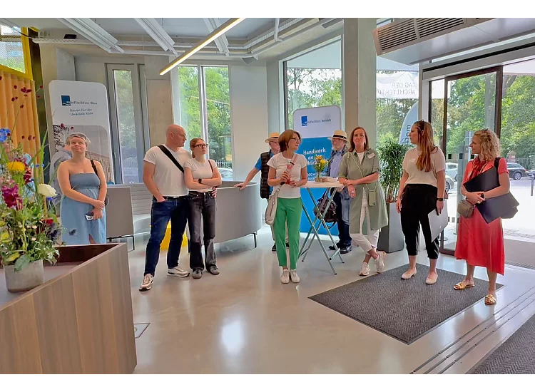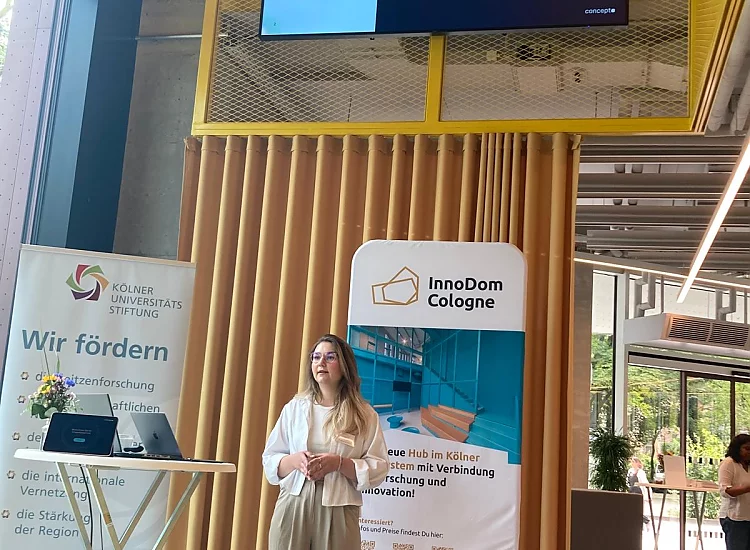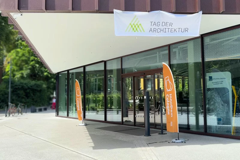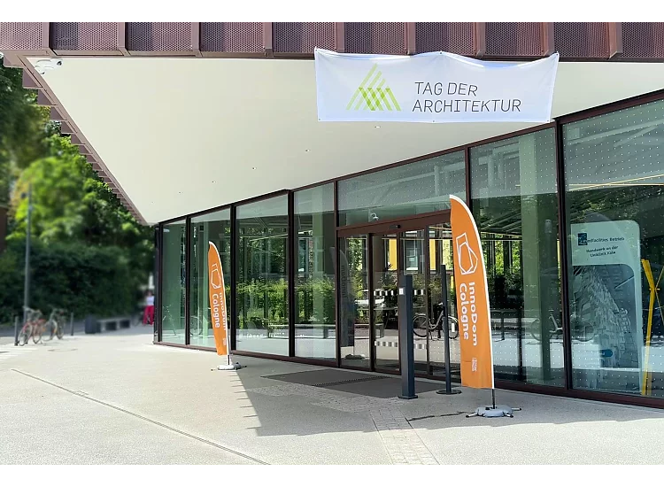 Beachflags vor der Eingangstür und der Duft nach frischgebackenen Waffeln wiesen den rund 200 Interessierten am Tag der Architektur den Weg in den InnoDom Cologne: Am Samstag, dem 29.06.2024 hatte die Kölner Universitätsstiftung zu einem Tag der offenen Tür eingeladen.