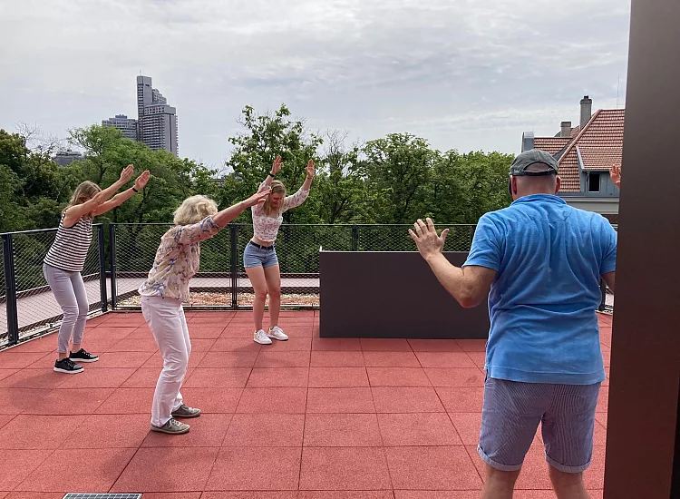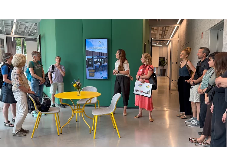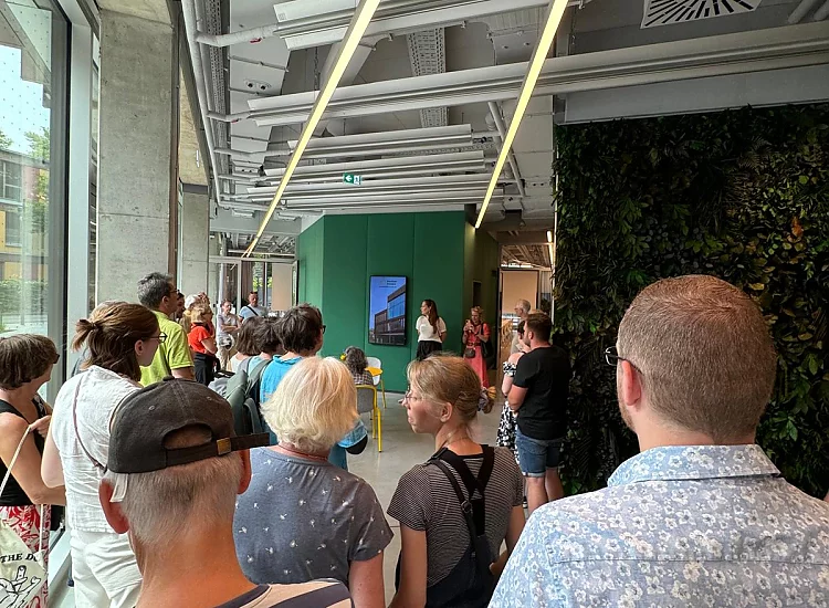 Von 11 bis 15 Uhr bot die die Unistiftung Interessierten ein buntes Programm. Führungen durchs Haus, ein Vortrag zum Thema Building Information Modeling (digital und nachhaltig bauen), die Präsentation von drei Start-ups aus dem Haus sowie der Pausenexpress mit dem UniSport Köln machten das Besondere am Gebäude erlebbar. Auch kulinarisch wurden die Besucherinnen und Besucher bestens versorgt. Das hauseigene Café „Gateway Coffee“ hatte geöffnet. Auf der Dachterrasse gab es außerdem alkoholfreie Cocktails, die bei strahlendem Sonnenschein großen Anklang fanden.