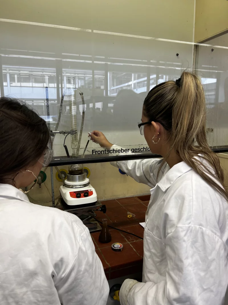 Die Teilnehmenden stellten synthetisches Vanillin aus einem Abfallprodukt der Papierherstellung her und arbeiteten dabei mit Laborapparaturen, wie sie auch in der universitären Lehre und Forschung eingesetzt werden.
